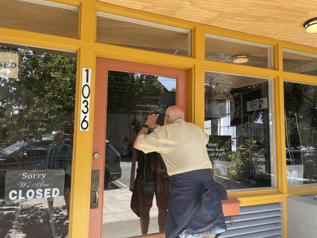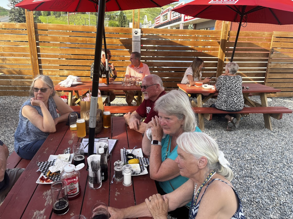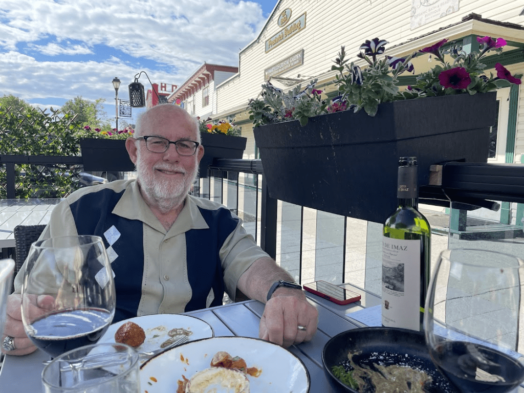 Bruce Russell met us at the gate, and he told us where to park. It’s hot here these days. So we set up the Villa and we headed into Healdsburg for some refreshment…