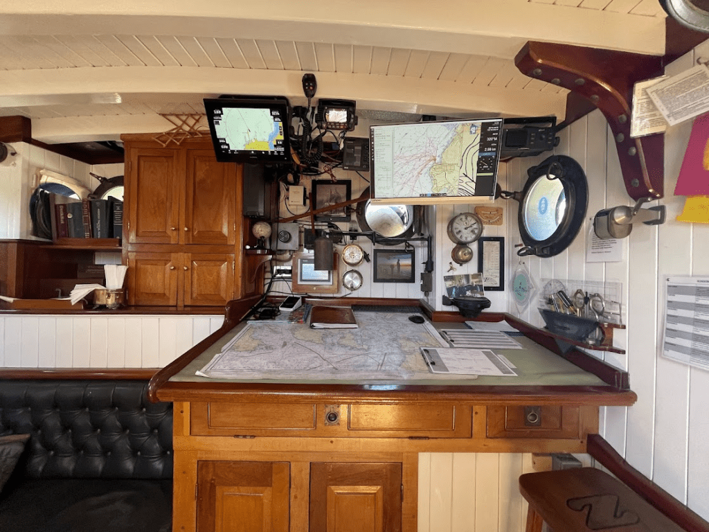 Below deck are the kitchen, a lounge, several staterooms and several bunks. You can take 3-7 day trips if you are so inclined. We opted for the three hour tour…