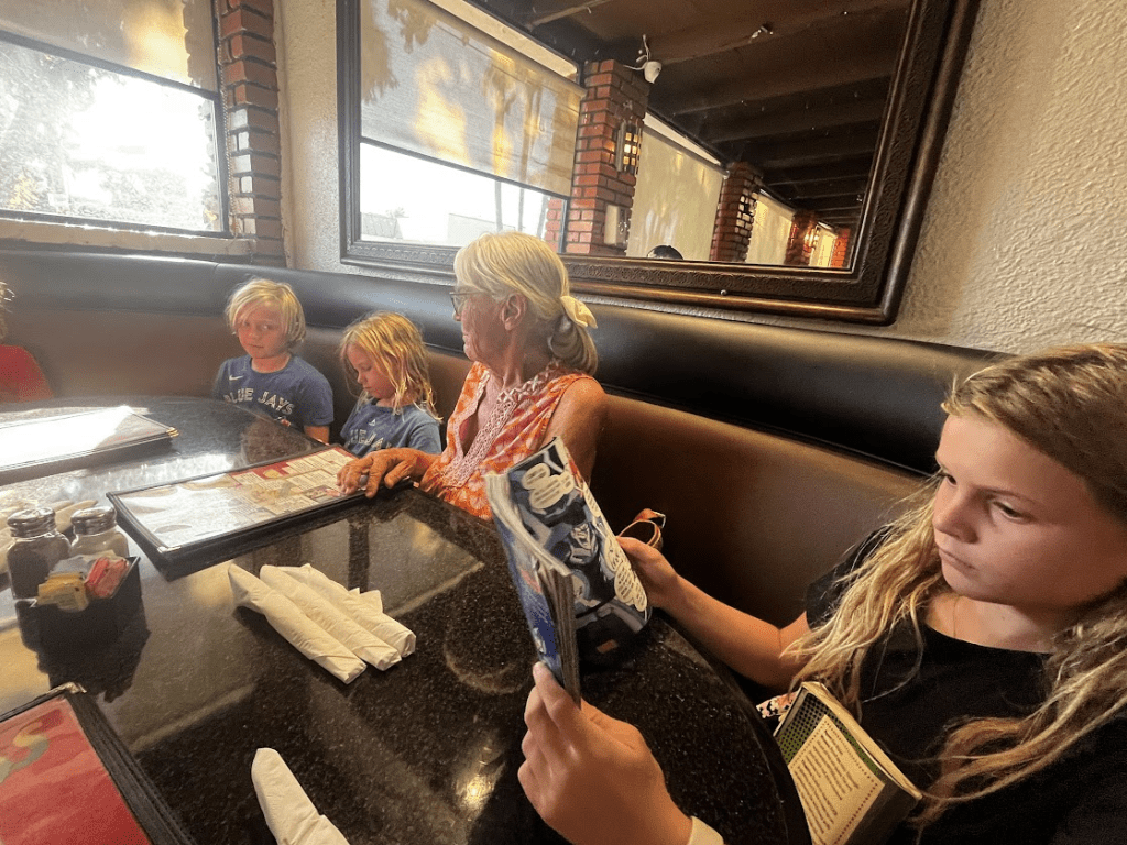 Rather than fight afternoon traffic out the 210 we parked at the curb in front of our daughter’s house. She was working, so we walked over for a nice dinner at Los Amigos with the Thundering Herd… – nerds all of them, with their noses in their books…