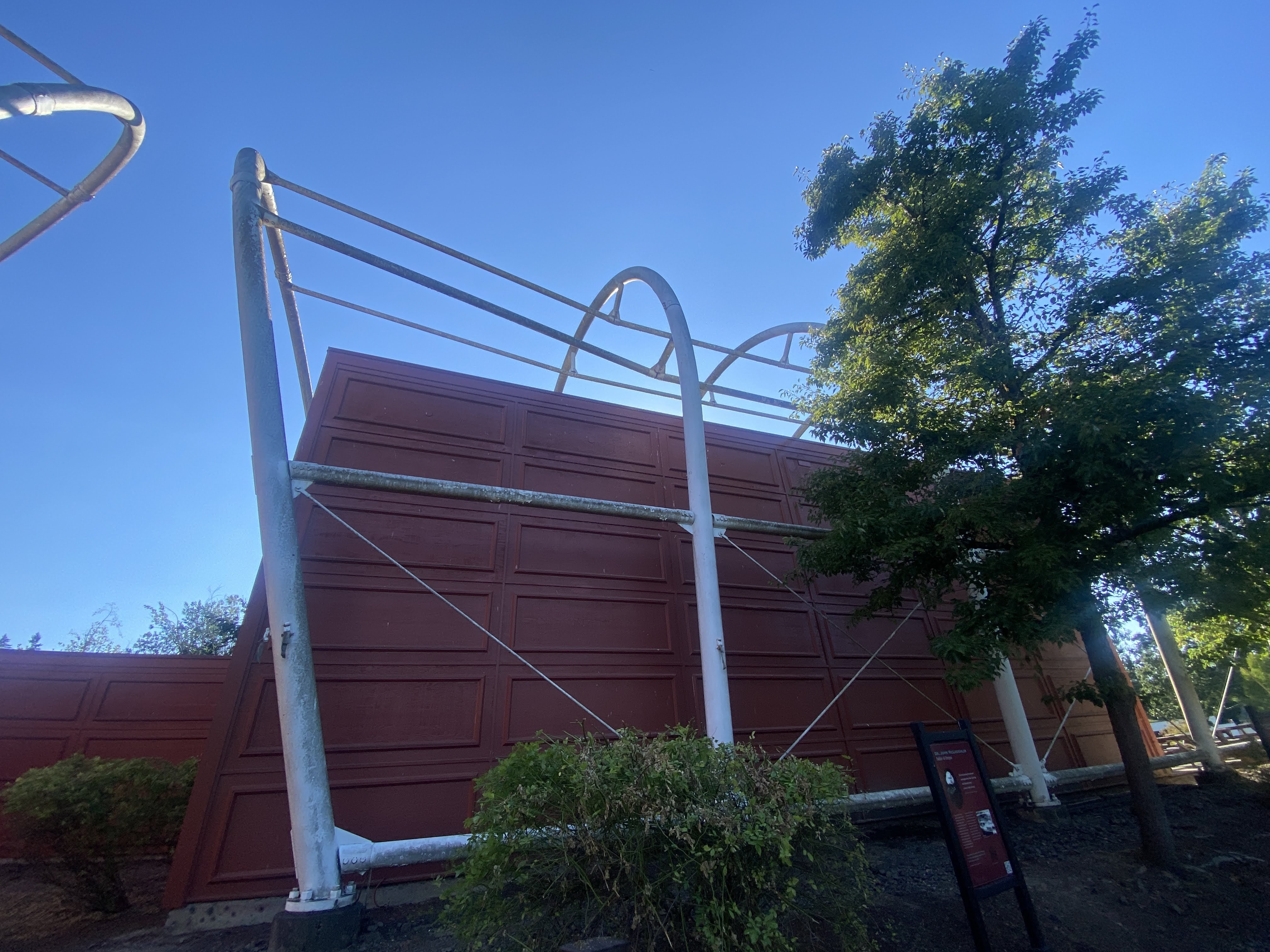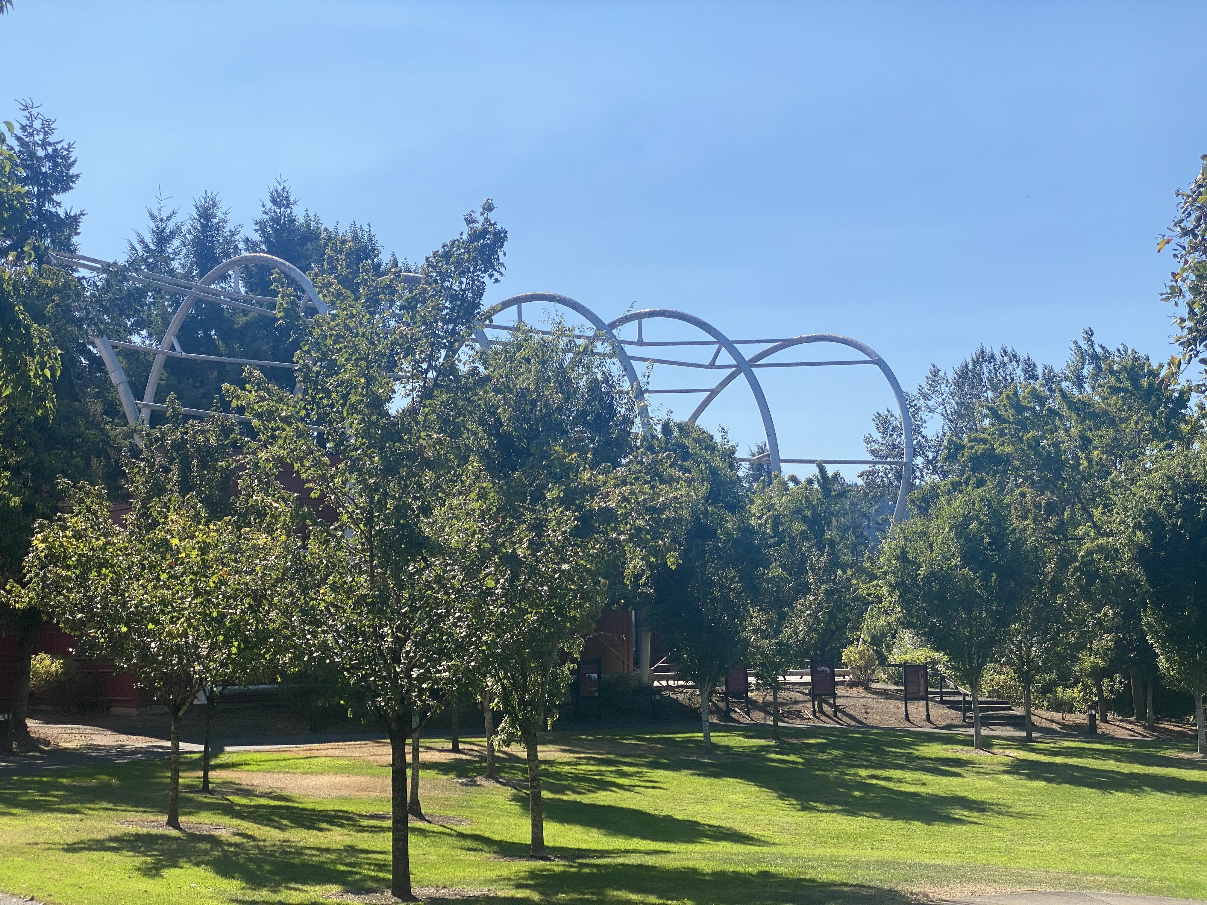 On our last night we visited the End of the Oregon Trail Interpretive Center, in nearby Oregon City… The buildings were simple boxes, but they are all outlined above with the skeleton of the covered wagons. It was impressive – it made it seem like we were under the ghosts of the wagon trains…