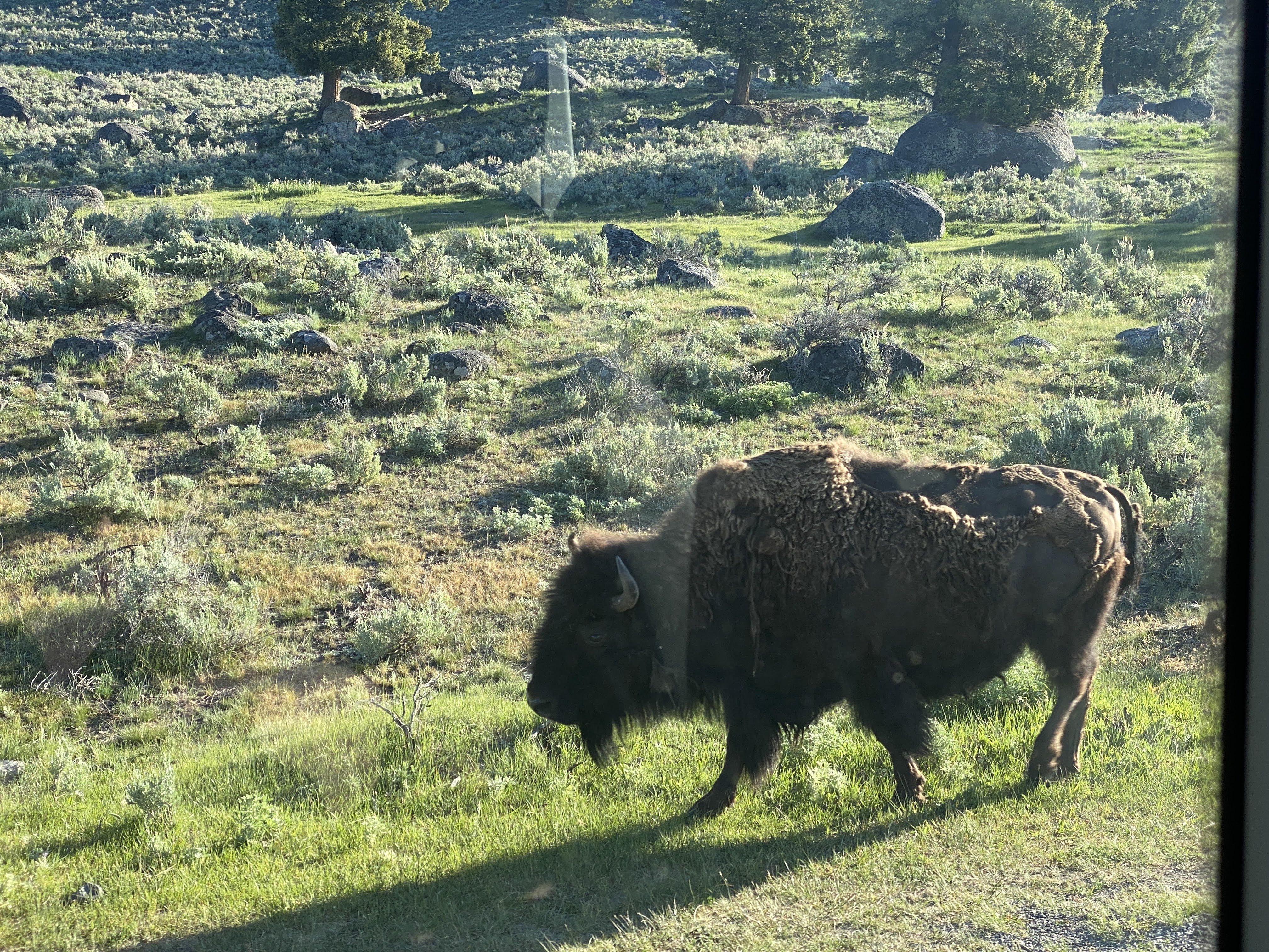 We had set the alarm for 4:30 am to be ready to board a small bus at 5:45 am. We are going into Yellowstone today to look for wildlife…