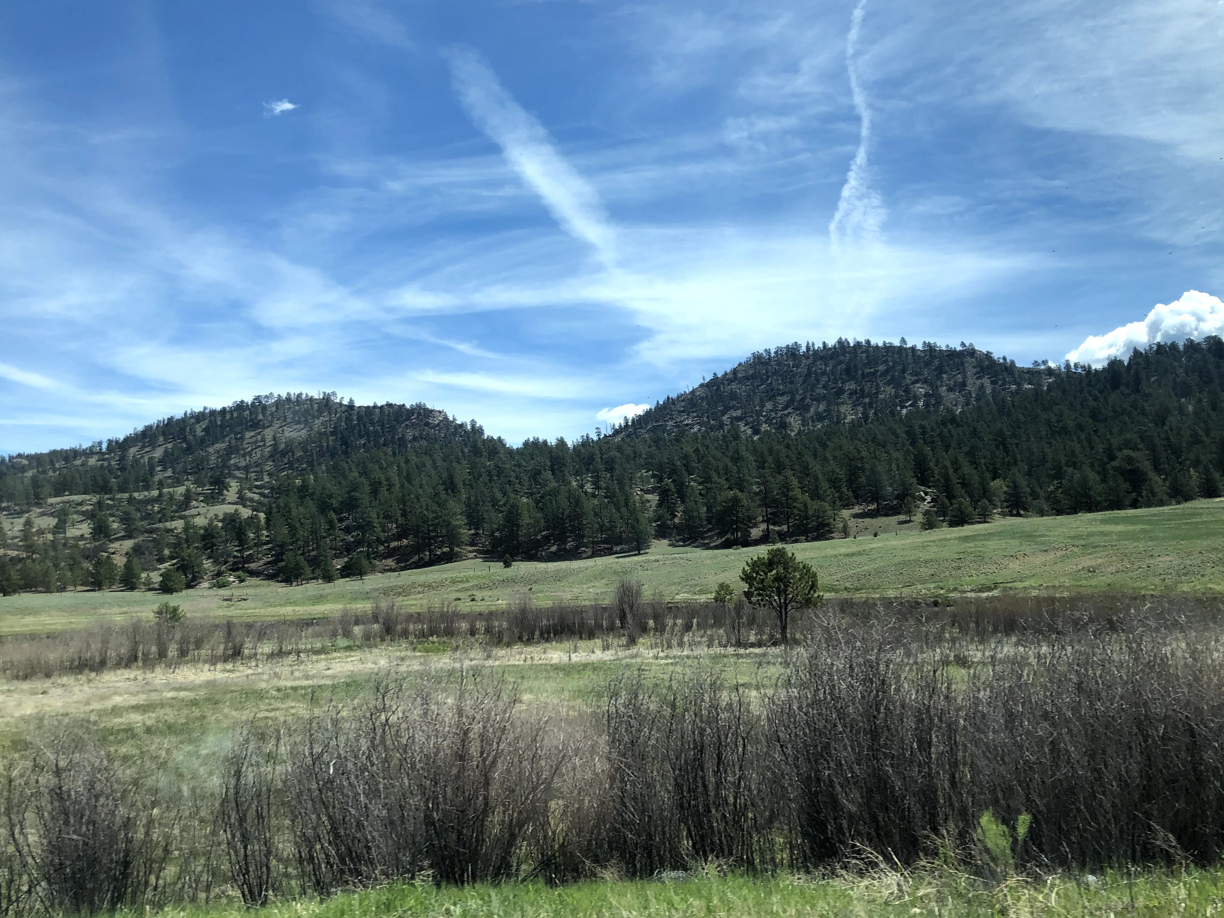 We left Colorado Springs about 9:45. Along this route we are traversing 4 mountain passes, some higher than others. Wilkerson Pass is at 9,500′ elevation. (This is not as high as it sounds to you flatlanders – we started at the RV park at elevation 6,320’. In contract, Mt. Whitney, the tallest mountain in the 48 United States, is 14,500′, rising out of the plains of Death Valley, at elevation -282′.