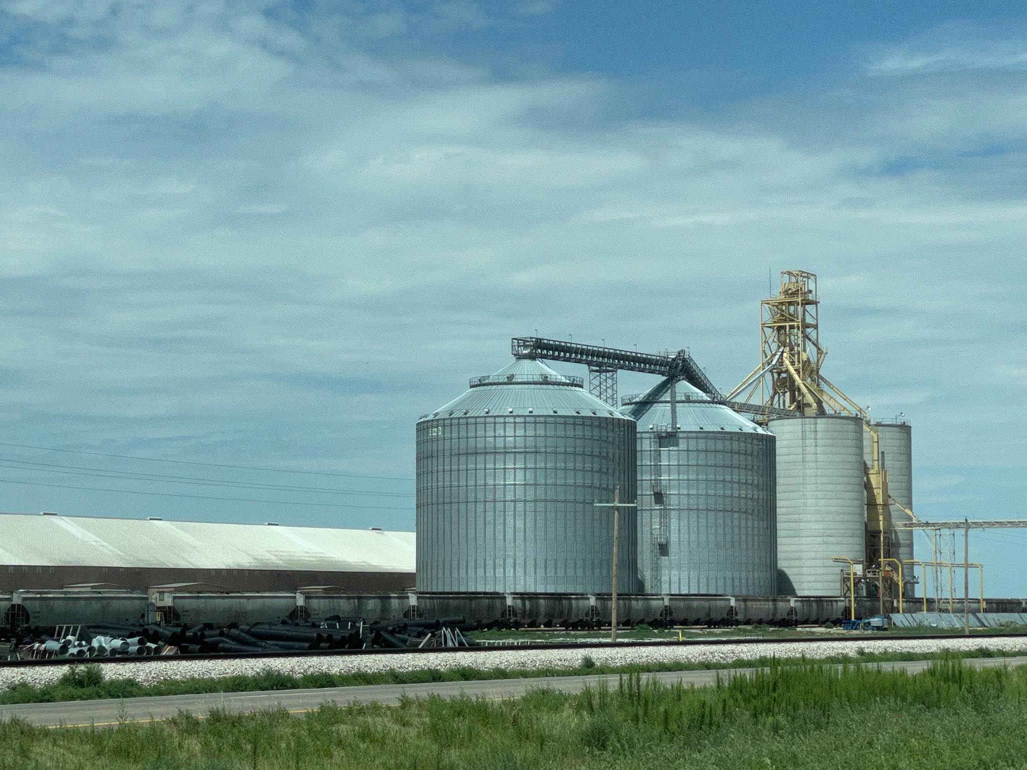 All day yesterday and all day today, until we entered New Mexico, we followed the railroad tracks.  About every ten miles we came to a small town dominated by these giant grain elevators or silos…