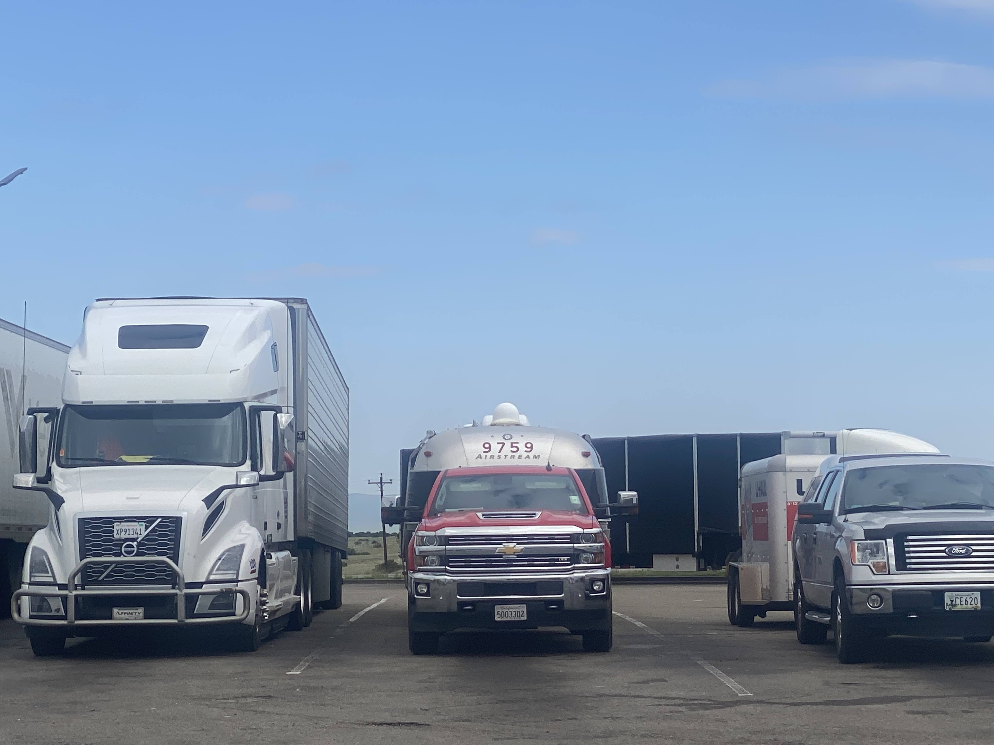 We had an uneventful trip. We had more rain – enough to wash off all the mud we picked up whilst parking in the alley behind the winery. We stopped for fuel, as we do each day. We also stopped at a Rest Stop to eat lunch in the Airstream, and to walk around a bit to get our exercise…